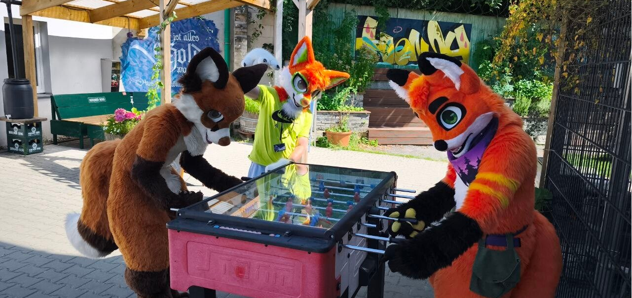 Dabei sind wir, obwohl wir zu drei Vierteln aus Fuchs bestehen, überhaupt nicht scheu! Im Gegenteil: Wir lieben es Fotos mit Ihnen und Euch zu machen, mit euch zu spielen, zu tanzen und zu singen.
